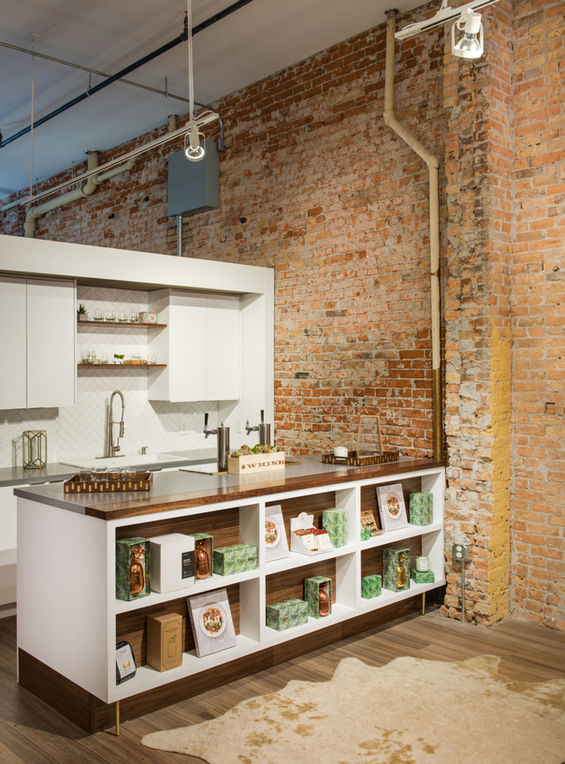 Evrgreen Women’s Clothier is a historic renovation project in downtown Bozeman that transformed a 2,744 sq ft former photography store into a bright and elegant shopping experience for women. The space had not been updated in over 30 years, which gave the team an opportunity to reimagine not only the design but also structural and acoustic elements to completely transform the space. From the sidewalk, Evrgreen’s facade maintains the character of Bozeman’s downtown through the use of historic brick, while the interior is tailored to the Evrgreen brand. A new checkout area wrapped in herringbone tile, a spotlit shoe wall, soft seating lounge, and a custom-built refreshment station are hallmarks of the Evrgreen concept. Completed in 2017, Evrgreen sparkles as a sister shop to Revolvr, the owner’s original shop, a retail experience for men, and has since been replicated in Bend, Oregon.