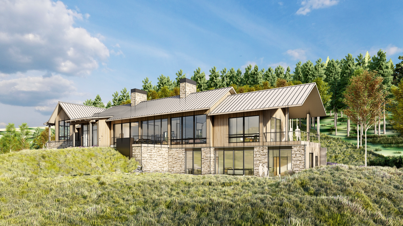 Set against the backdrop of the Bridger Mountains, the Bridger Woods Road residence was designed to embrace the sloped site with intention by nestling into the topography rather than working against it. The garage and walk-out basement are on opposite sides of the home, each tucked into the landscape on their respective lower levels. Large, strategically positioned windows frame mountain views while maintaining privacy between public and private spaces. The primary suite sits above the garage in its own wing, featuring a sitting room that separates the bedroom from the bath and closets, giving it a refined, suite-like flow. Traditional roof massing is paired with clean lines and subtle contemporary detailing. Decks extend from the ends of the house to soften its silhouette and blend the structure into the horizon. A key design challenge—hiding the road and minimizing the garage’s presence from the great room—was met with creative siting and careful spatial planning.