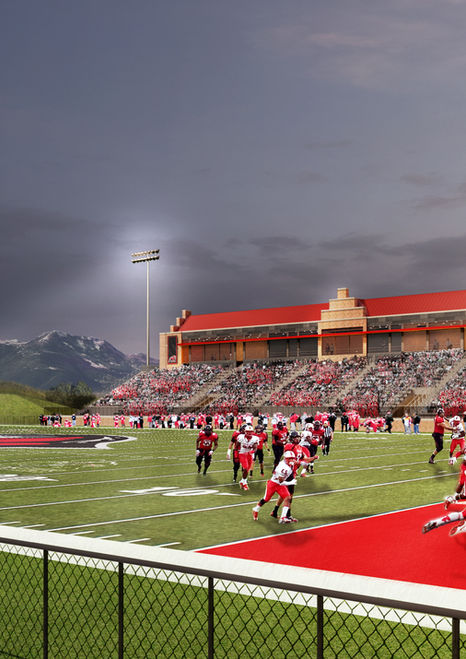 The University of Montana Western is getting a new home for The Bulldogs. After playing football in their previous stadium since 1949, it was time to reimagine the space with an eye on both student and community athletic development. This feasibility study and master plan determined the grand vision for spatial and site planning for a range of purposes. The result is a plan for a new artificial turf field, seating for 1,500, and a 24,000 SF state-of-the-art athletic facility designed to do it all: fitness classes, training sessions, meetings, a ticket office, press boxes, and VIP suites. The athletic facility will include the excavation of the existing hillside, creating a natural bowl landscape feature around the new field. It wouldn’t be complete without perimeter drainage and curbing, site utilities, goal posts and field netting, and a scoreboard with video display. Guests will arrive through reimagined parking, walking and drive access that connects the new field and facility to the existing campus.